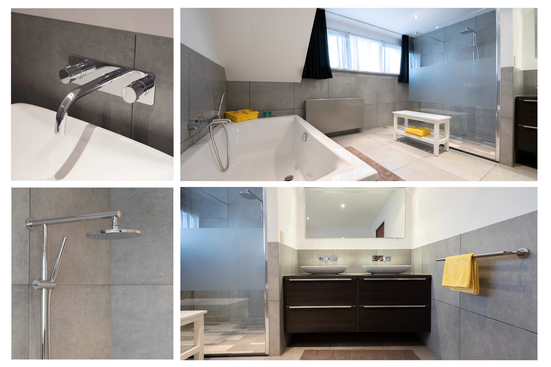 De badkamer is een plaatje: een stijlvol ligbad, riante inloopdouche, tweede toilet en dubbele wastafel maken van deze ruimte een plek waar je ’s ochtends relaxed de dag begint of ’s avonds helemaal tot rust komt.