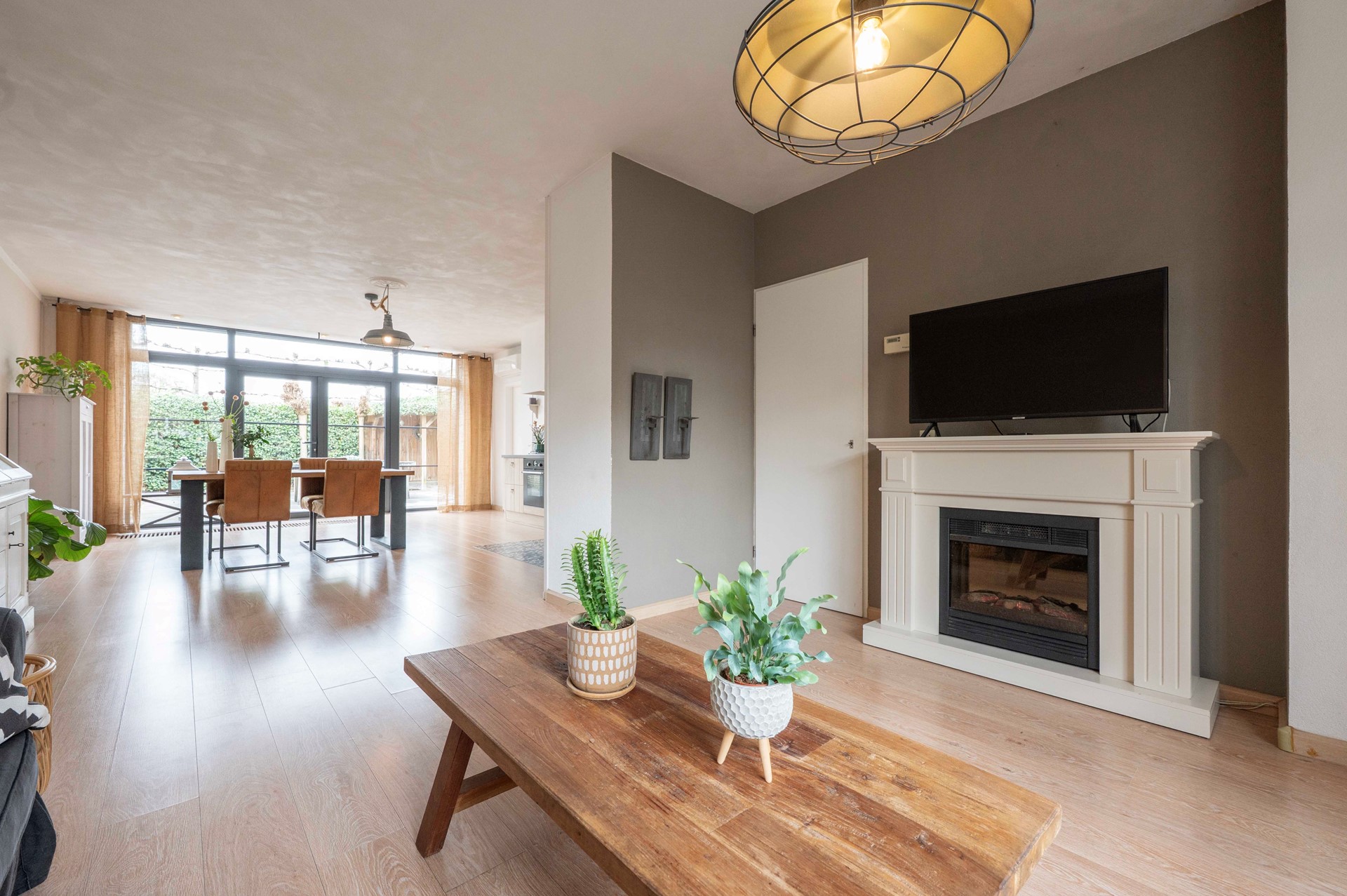 Stap binnen in de gezellige woonkamer, waar grote ramen ervoor zorgen dat het licht mooi naar binnen valt. Aan de voorzijde bevindt zich de sfeervolle zitruimte: knus, prettig ingedeeld en perfect geschikt om na een lange dag even te ontspannen. Je voelt gewoon dat elk moment hier comfortabel wordt.