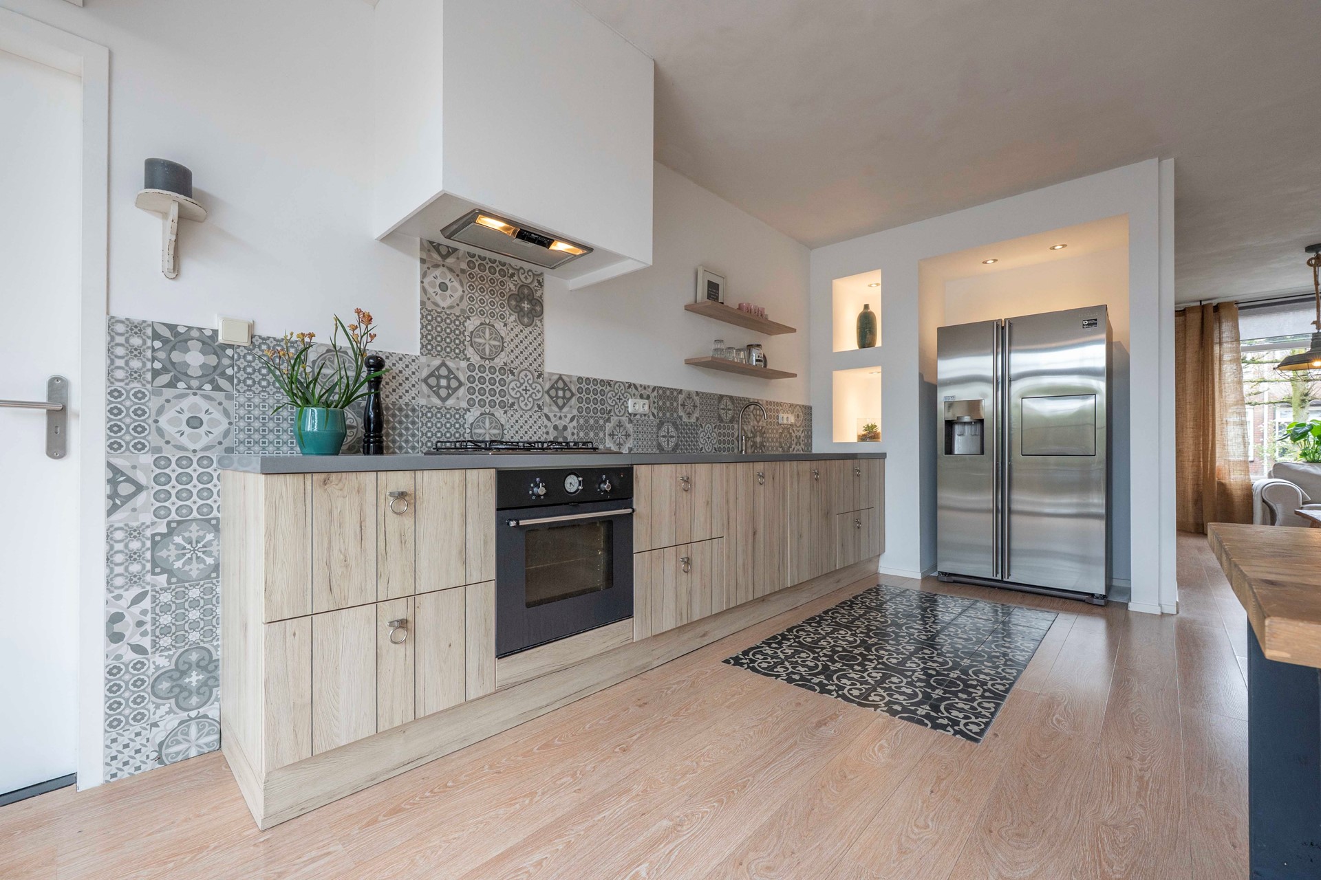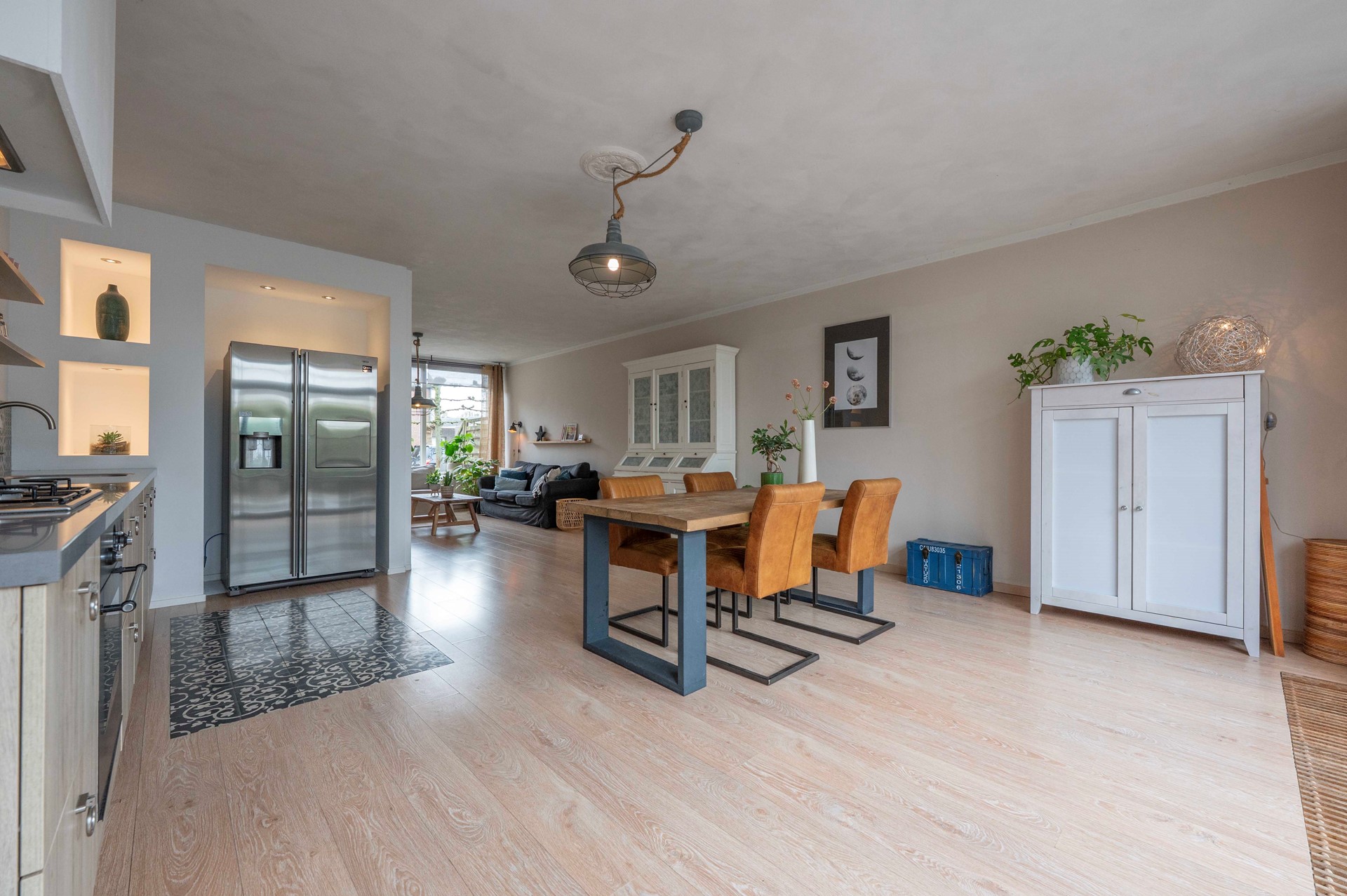 Aan de achterzijde word je verrast door de royale, uitgebouwde eetkamer met moderne open keuken. Het is een plek waar je na een drukke werkdag samenkomt, laat in de avond natafelt met vrienden, of juist even tot rust komt met zicht op de tuin. De prachtige pui zorgt voor een directe verbinding met buiten; trek gerust de deuren open en geniet van het groene uitzicht!