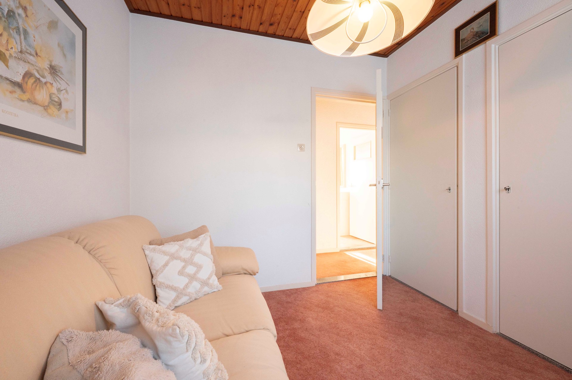 De bungalow is volledig gelijkvloers, wat betekent dat je comfortabel leeft zonder trappen. Het slaapgedeelte bestaat uit drie keurige kamers; allemaal met voldoende mogelijkheden voor kasten en een bureau of bed.