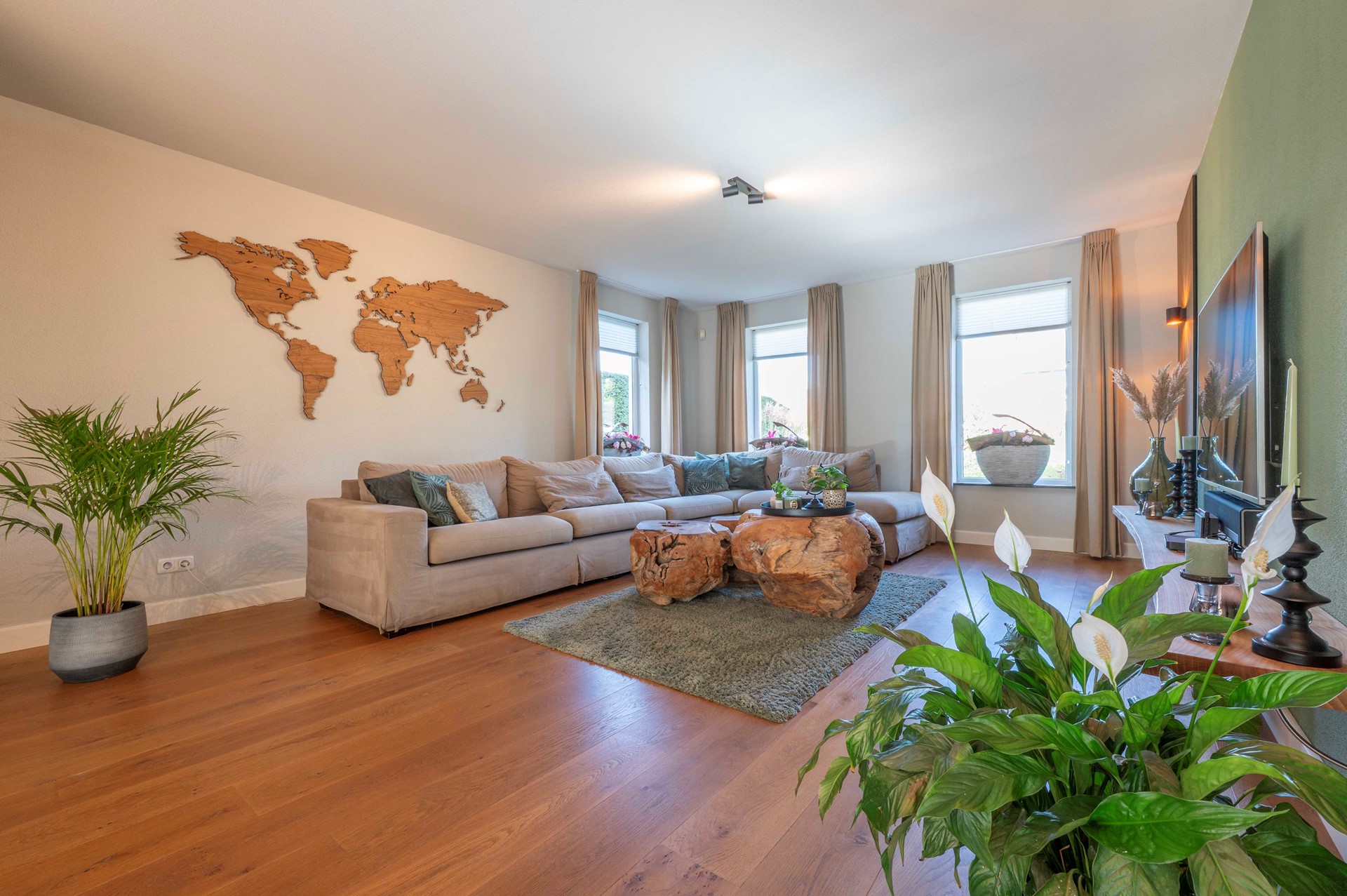 De living is royaal opgezet; genoeg plek voor een flinke zithoek én een lange eettafel om het leven te vieren. De erker biedt panoramisch zicht op de tuin – elk seizoen schildert weer een ander uitzicht. Stel je voor: een kop koffie met uitzicht op de vogels in de ochtendzon. Dit is pas genieten.