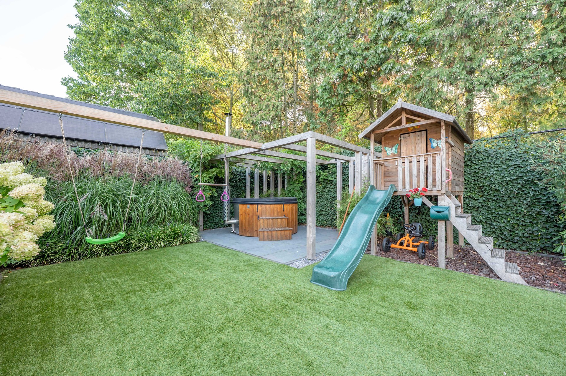 De tuin – onder architectuur aangelegd – straalt klasse en rust uit. Deze buitenruimte nodigt uit om te tuinieren, te ontspannen, te spelen, buiten te eten en te genieten. De sfeervolle overkapping is de aangewezen plek om tot in de late uurtjes buiten te blijven zitten, weer of geen weer. Barbecue, borrel, of juist een zen-momentje met een boek? De mogelijkheden zijn eindeloos. Hier is jouw privacy gegarandeerd.