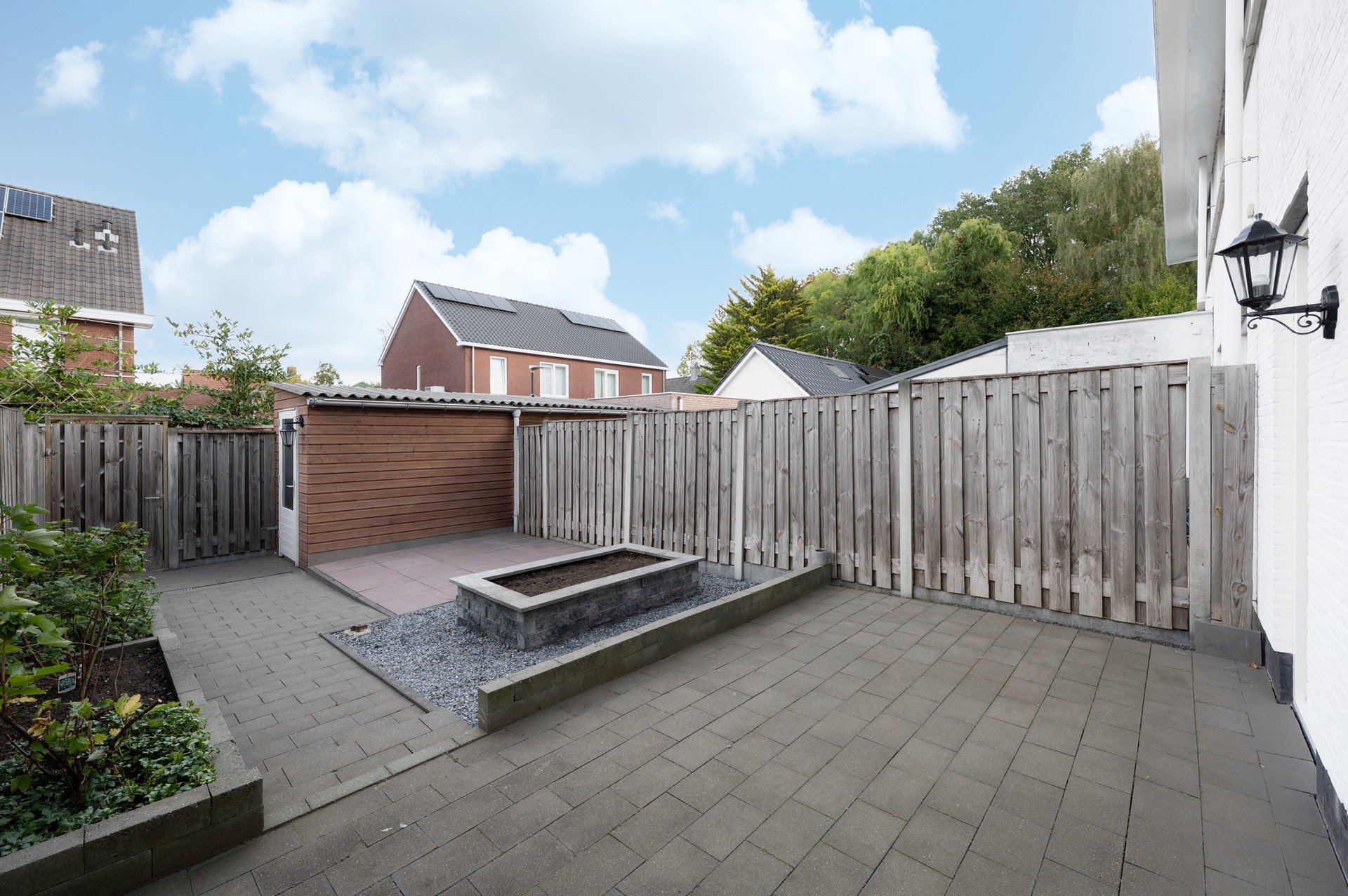 De achtertuin is onderhoudsarm aangelegd en beschikt over een berging en handige achterom. Genoeg plaats dus voor fietsen, gereedschap of kinderspeelgoed.