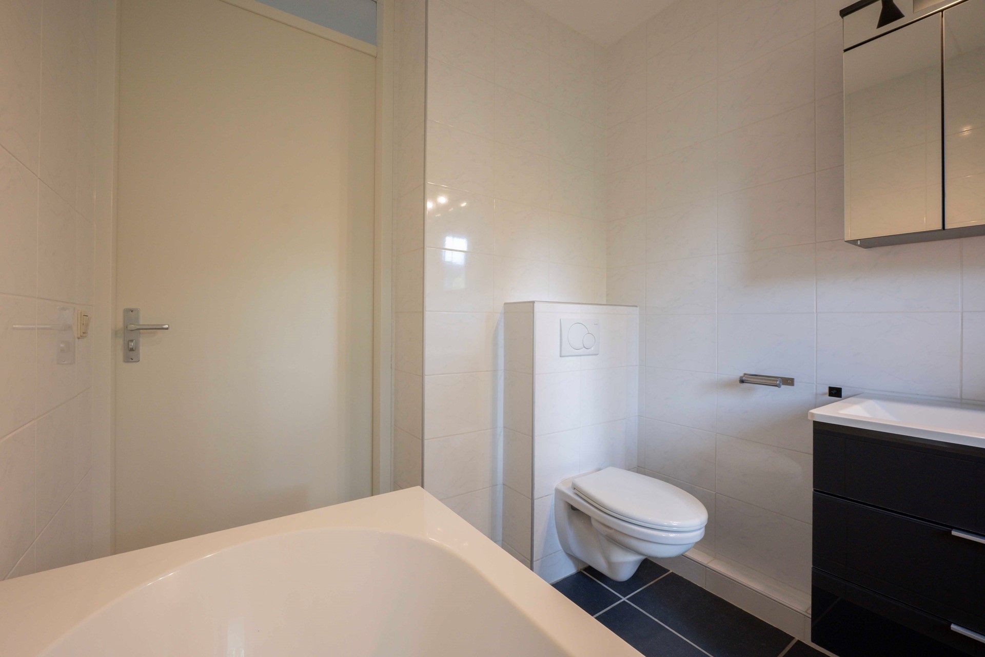 Op de eerste verdieping vind je drie comfortabele slaapkamers, geschikt voor slapen, werken of spelen. De badkamer is voorzien van eigentijds tegelwerk, een heerlijk ligbad met douchevoorziening, een tweede toilet én een modern wastafelmeubel. Hier start en eindig je de dag in alle rust en comfort.