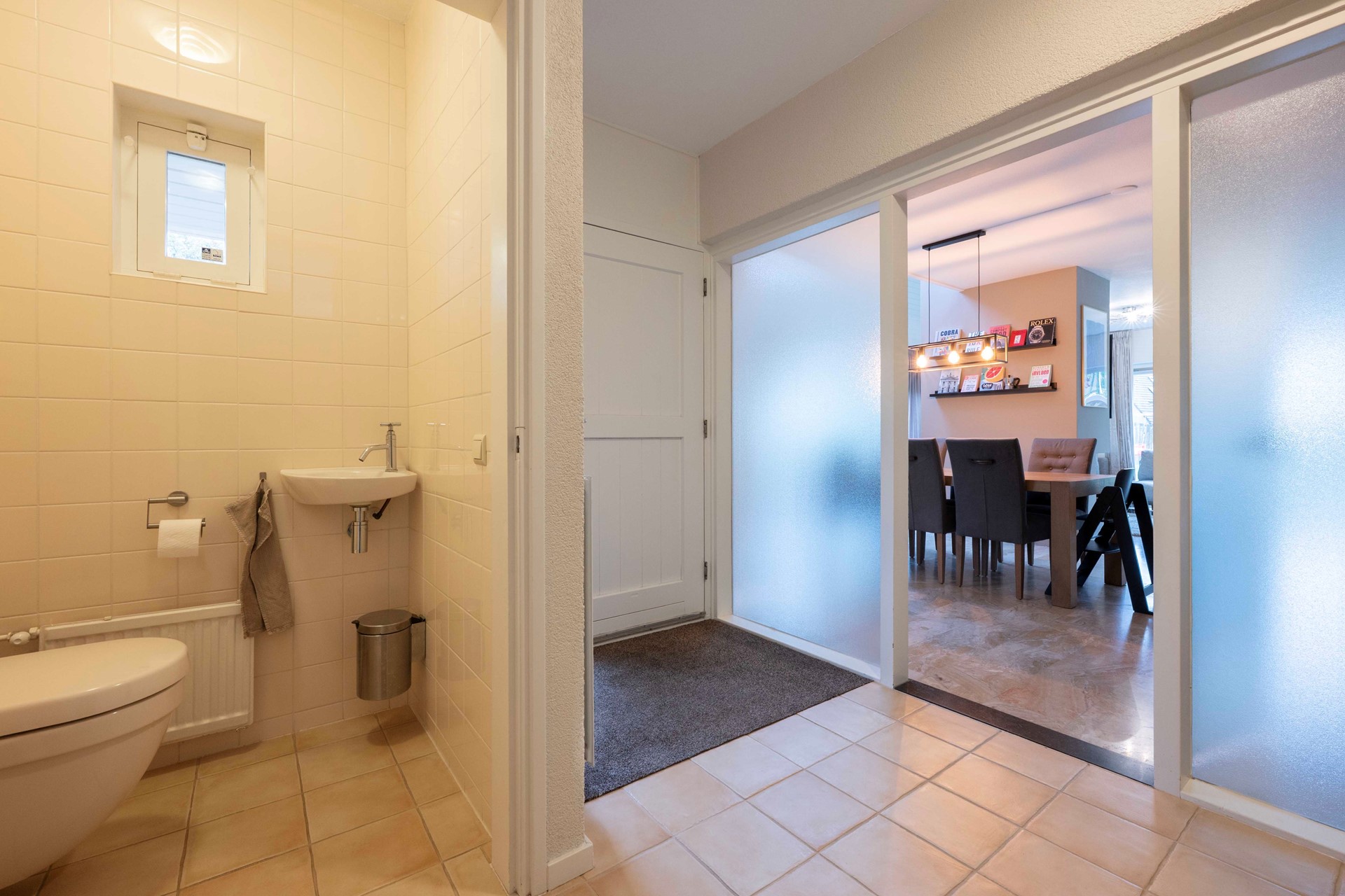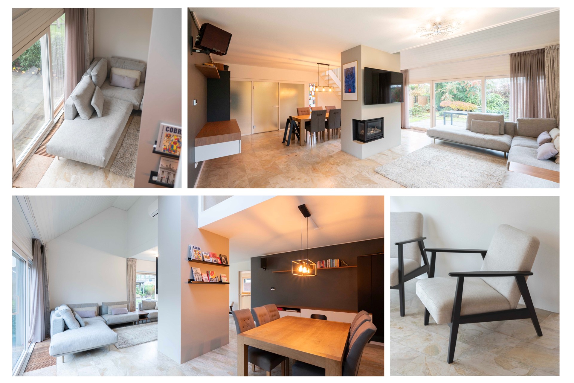 Binnen stap je de lichte hal binnen, compleet met keurige toiletruimte. De sfeervolle, speels ingedeelde living nodigt uit tot samen zijn: grote raampartijen trekken het buitenleven naar binnen en een gezellige gashaard vormt op subtiele wijze de scheiding tussen het zit- en eetgedeelte. Er hangt overal een prettige ambiance waar “thuiskomen” vanzelfsprekend voelt, of je nu met het gezin geniet van een knusse filmavond, borrelt met vrienden óf even lekker tot jezelf wilt komen na een drukke dag.