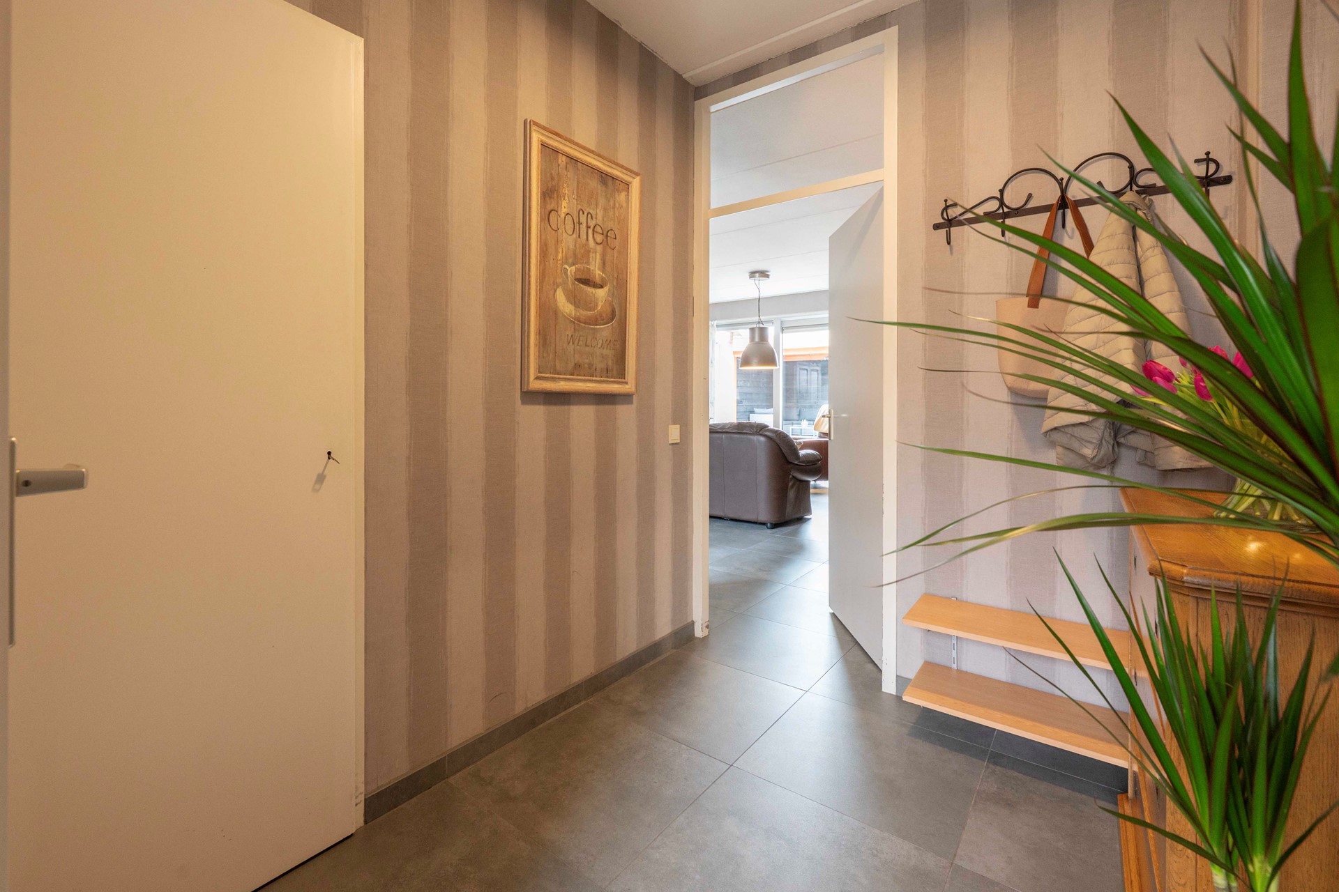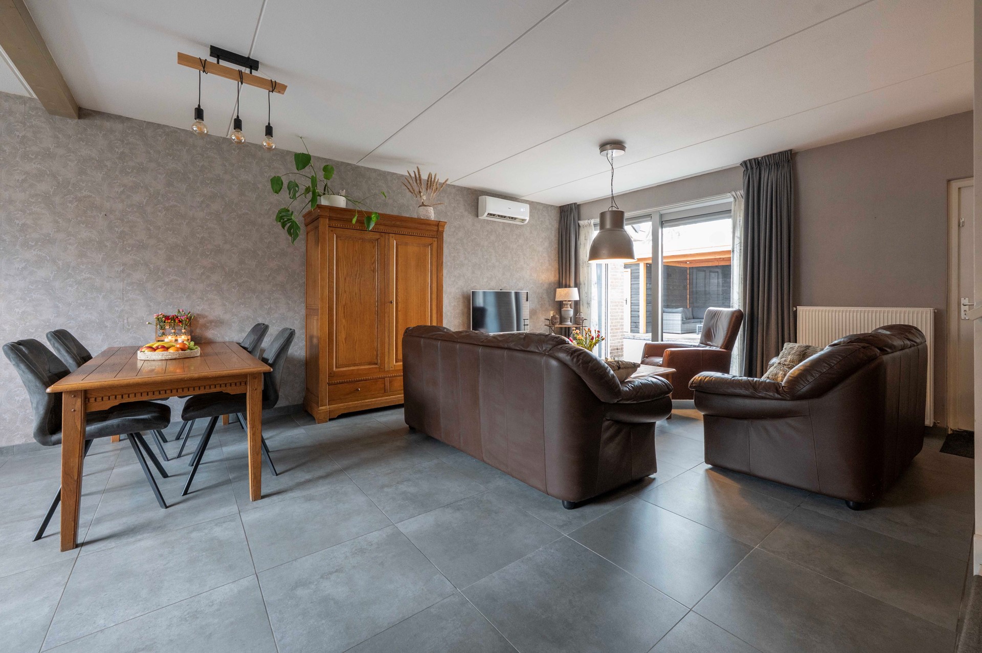 De entree is keurig afgewerkt en geeft een prettig welkom. Vanuit de hal loop je door naar de ruime, lichte woonkamer. Aan wooncomfort geen gebrek, want de vloerverwarming zorgt voor een prettig binnenklimaat, het hele jaar door. Open de schuifpui en haal buiten naar binnen; je wandelt zo de zonnige achtertuin in – heerlijk voor tuinfeestjes of een ontspannen ontbijtje onder de overkapping.
