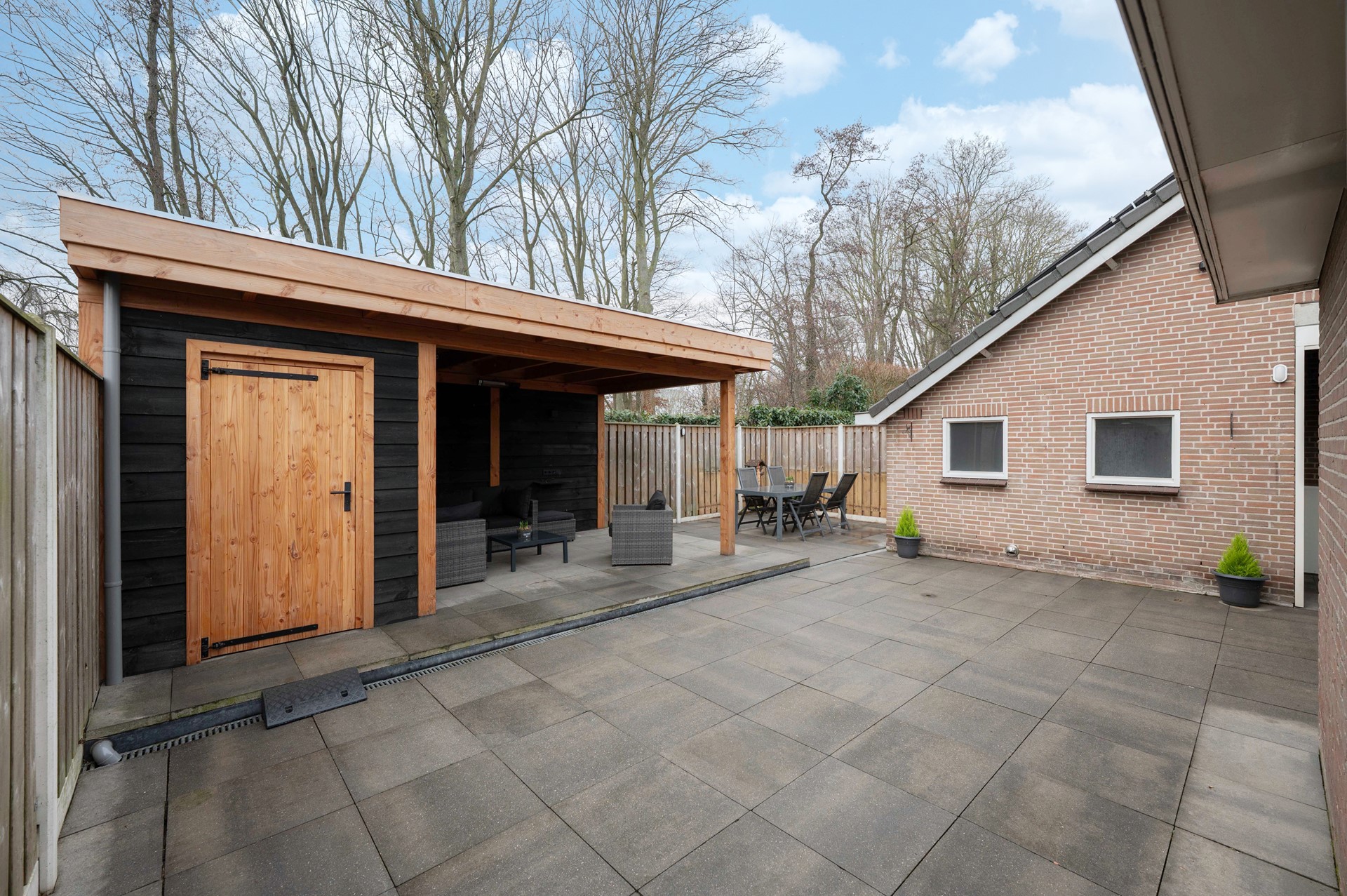 Achter het huis ligt de volledig betegelde achtertuin, zodat je nauwelijks omkijken hebt naar het onderhoud. De trendy overkapping maakt het tot een heerlijke extra buitenkamer, perfect geschikt om vrienden te ontvangen of gewoon lekker relaxt te genieten van het leven.