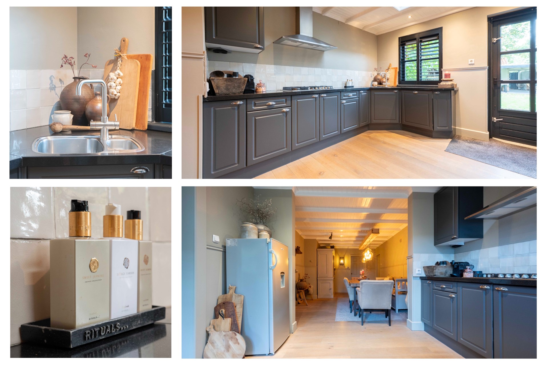Eten doe je in de royale woonkeuken. Hier kom je samen aan de grote tafel – lekker kokkerellen terwijl de kinderen huiswerk maken of je gasten verhalen ophalen. De keukeninrichting is zowel praktisch als sfeervol gehouden.