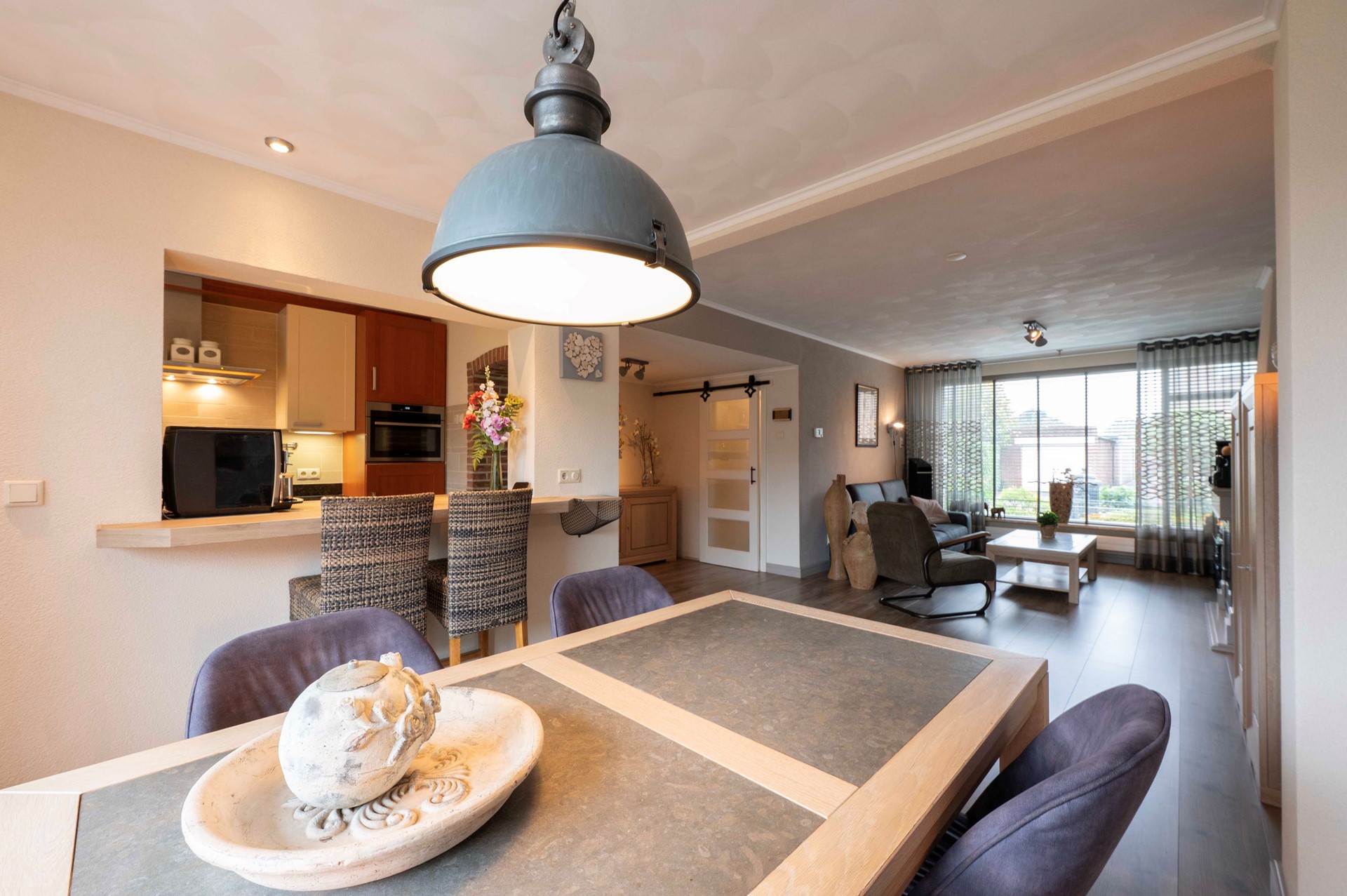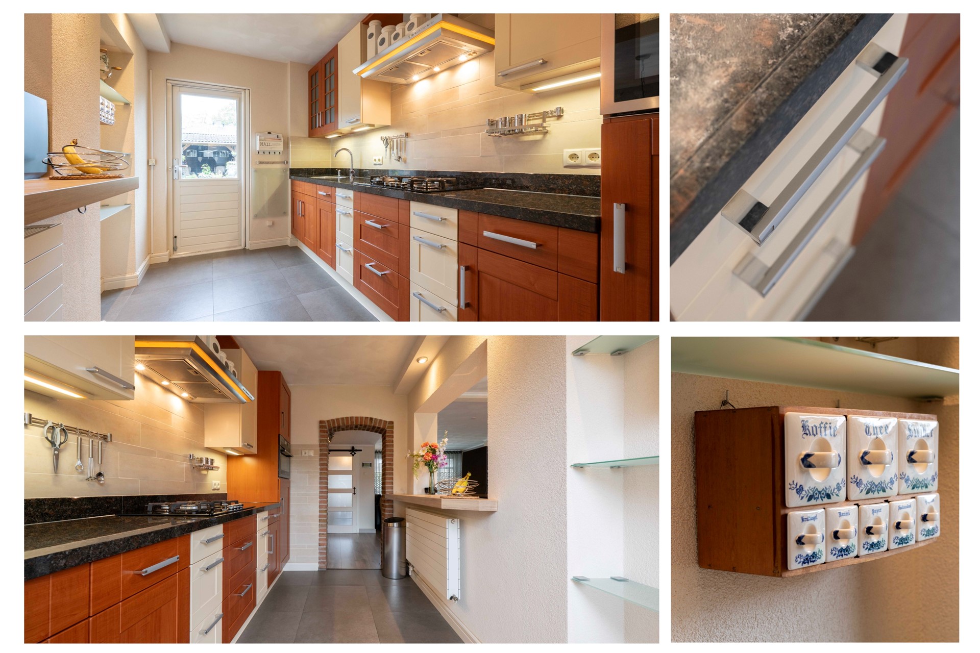 Aan de achterzijde vind je de halfopen keuken, die niet alleen praktisch ingericht is met inbouwapparatuur, maar ook gezelligheid uitstraalt. Terwijl je het avondeten bereidt, kunnen de kinderen alvast huiswerk maken of een spelletje doen aan het handige barretje. Vanuit de keuken is er direct toegang tot de tuin – ideaal als je op mooie zomeravonden buiten wilt eten of de kids lekker wilt laten spelen.