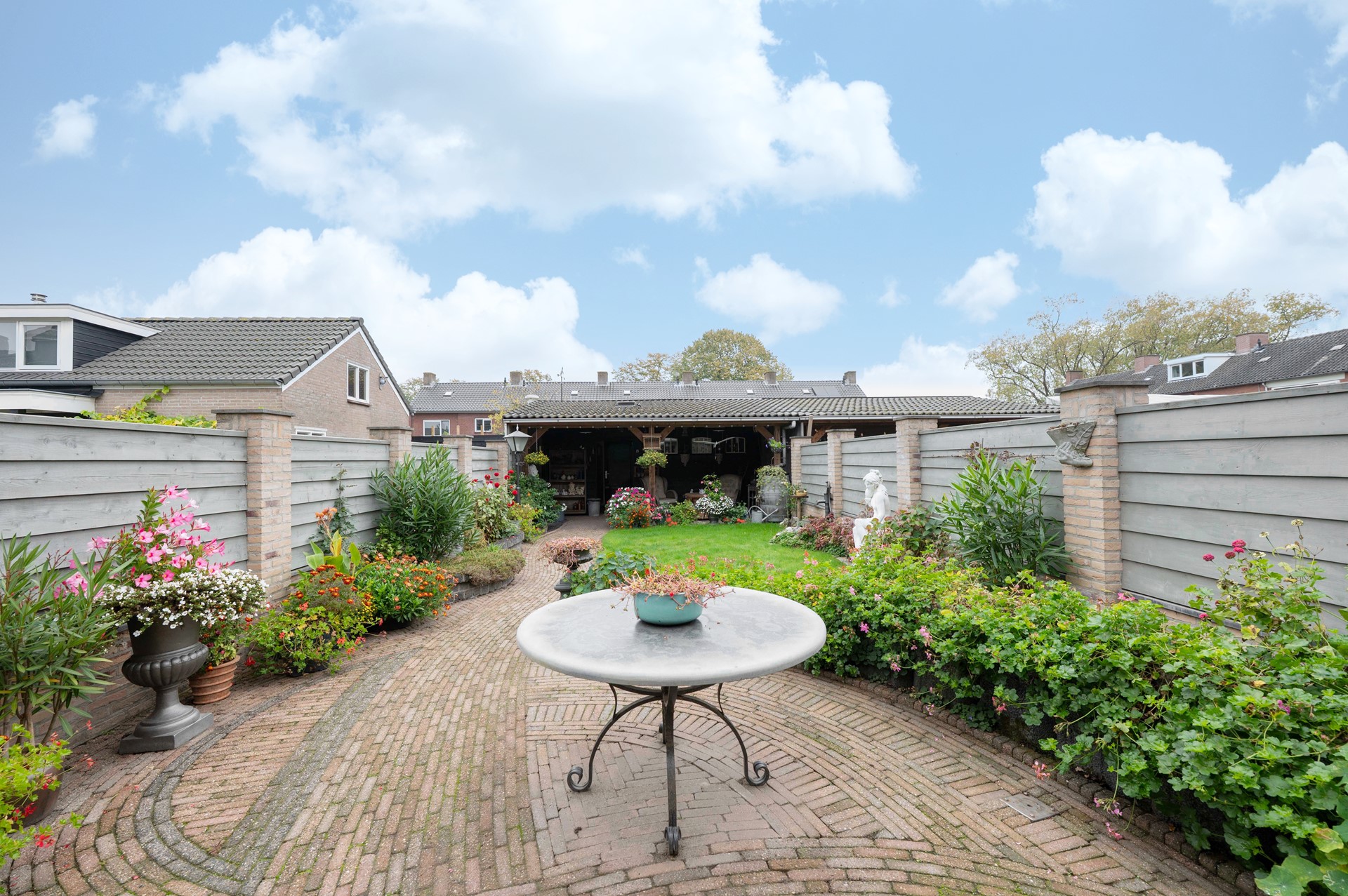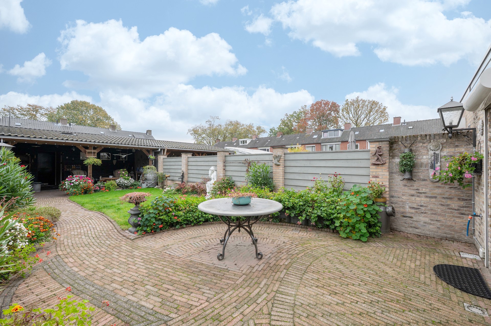 Aan de achterzijde ligt een heerlijk zonnige tuin, met een royale overkapping waar je tot laat in het seizoen buiten kunt zitten, genieten van een goed boek of BBQ met vrienden. Verder vind je achterin een stenen berging die plaats biedt aan fietsen, tuingereedschap en meer. Daarnaast is er een handige achterom, ideaal om via de achterzijde het huis te betreden met fietsen of containers.
