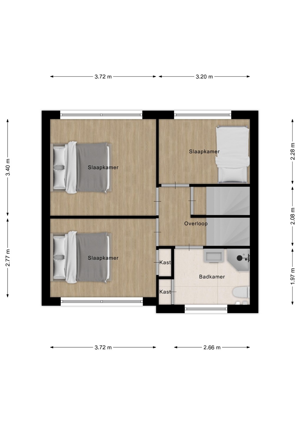 Op de bovenverdieping wachten drie prettig ingedeelde slaapkamers. Eigenlijk kun je er alle kanten mee op: inrichten als kinderkamers, thuiskantoor of logeerplek, de keuze is aan jou.