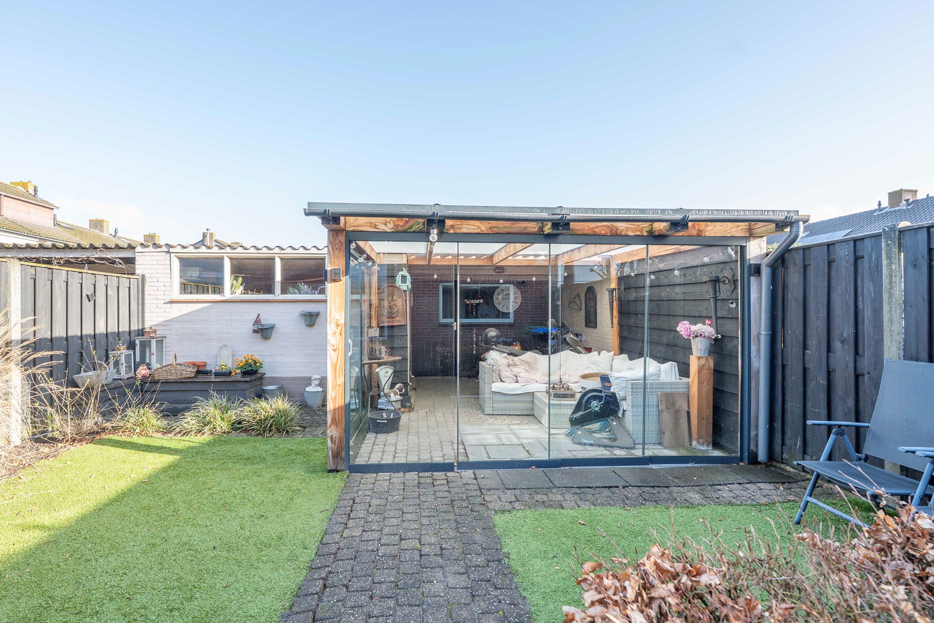 De achtertuin is volledig omsloten, waardoor je hier in alle privacy geniet van het buitenleven. Hier kun je iedere zomer barbecueën, tot laat onder de sfeervolle overkapping zitten of de kinderen veilig laten spelen. In de berging kun je fietsen kwijt, gereedschap of tuinmeubilair, en dankzij een handige achterom ben je zo met de fiets weg.