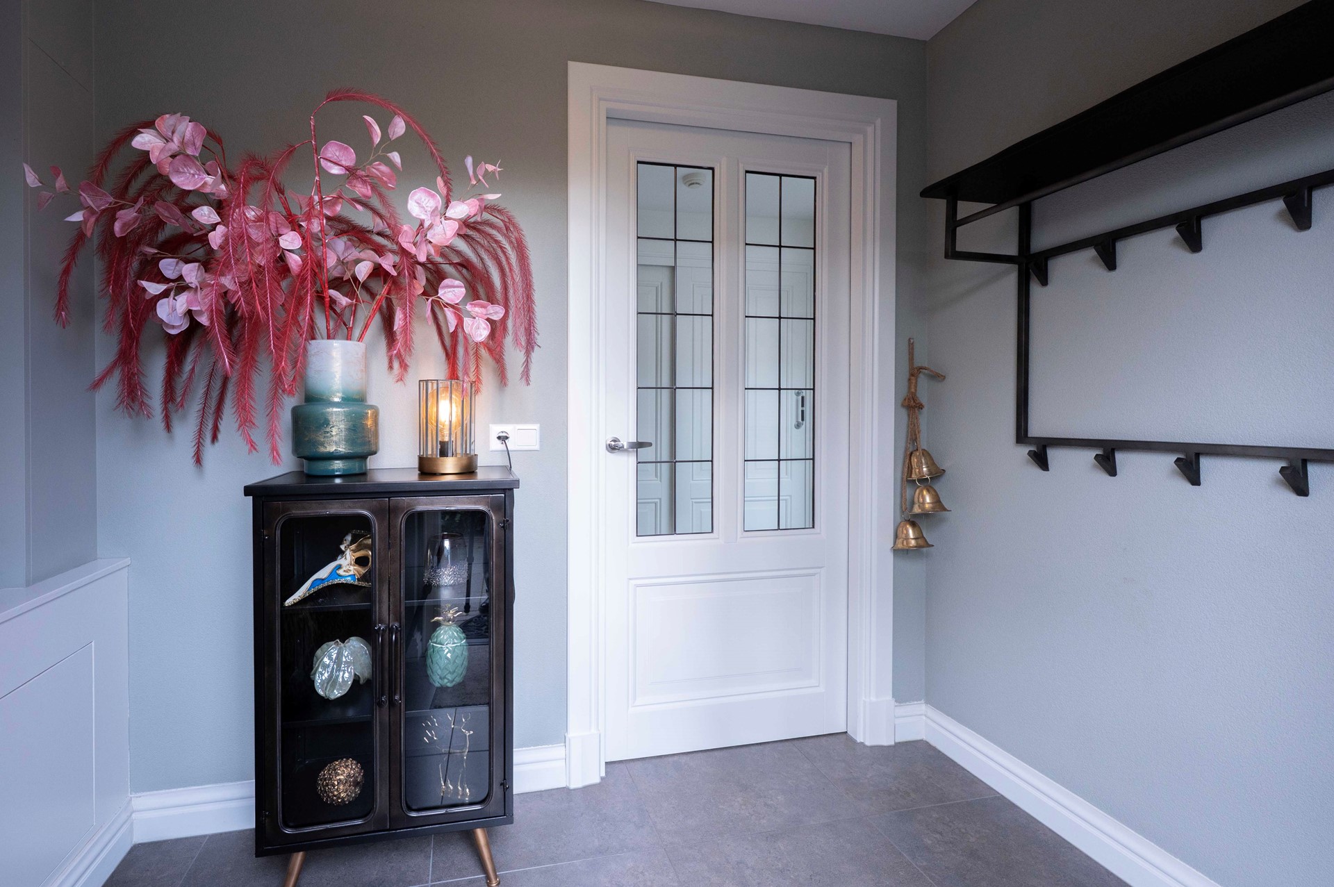Praktisch gemak vind je ook terug in de bijkeuken waar witgoed netjes is weggewerkt achter stijlvolle kastdeuren.