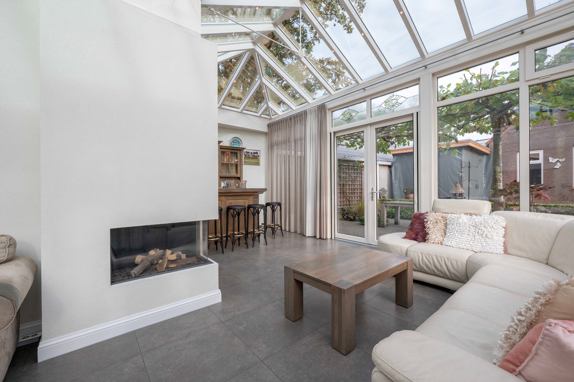 Zodra je de woonkamer betreedt, voel je je meteen thuis. De gashaard zorgt voor gezellige winteravonden. De afwerking springt meteen in het oog: fraaie wanden en plafonds met sierlijsten, hoogwaardige vloeren, fraaie kozijnen en stijlvolle plinten tillen het geheel naar een hoger niveau.